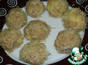 Скатать небольшие шарики, обвалять в сыре и поставить в холодильник для застывания.