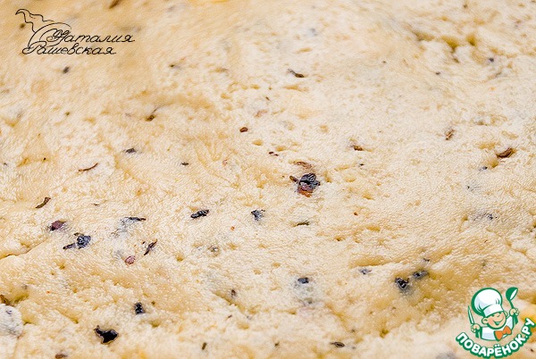 Потом смешиваем с яйцом. Ну и если добавляем до объема маслом растительным, то самое время его добавит сейчас. Солим. Хорошенько перемешиваем все вместе. И начинаем сыпать муку. Муку добавляем "на ощупь", чтобы получилось как надо... Ну примерно чтобы вышло не слишком крутое, но и к рукам не прилипало. Как хорошее песочное. В идеале тут еще примешиваем резанный мелко (или тертый на крупной терке) настоящий, а не плавленный или мягкий сыр. Эти мелкие кусочки дают самый смак и выглядят очень вкусно.