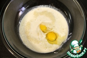 Добавляем сливки (или сгущеное молоко), соль, яйца и сахар.