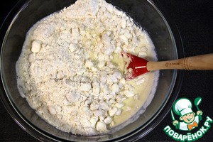 Следом добавляем смесь муки с маслом и перемешиваем.