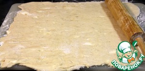 И раскатываем скалкой делая прямоугольник примерно 40 х 50 см.