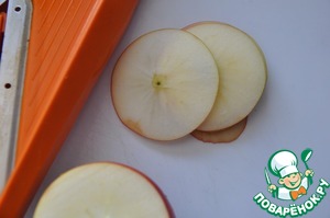 Яблоко нарезаем тонкими кружками или полукружками (толщиной около 2 мм).