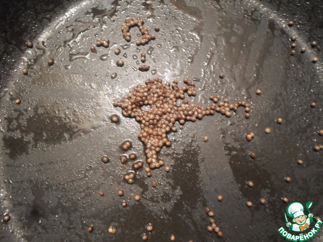 Семена горчицы обжарить в масле до серого цвета.