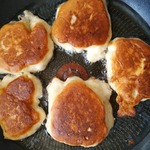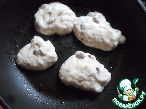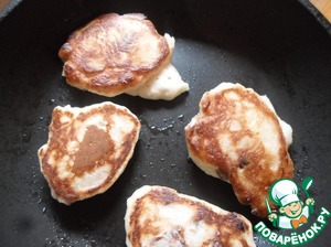 На раскаленную с маслом сковороду, выкладываем тесто в виде кругов.