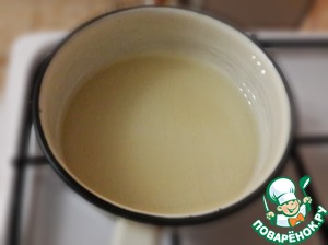 В сотейнике смешать воду с сахаром, и на медленном огне варим сироп. После как закипит, еще варим минут 10, до загустения.