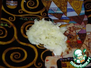 Тем временем выдавливаем через пресс чеснок и проварим 5 минут в молоке.