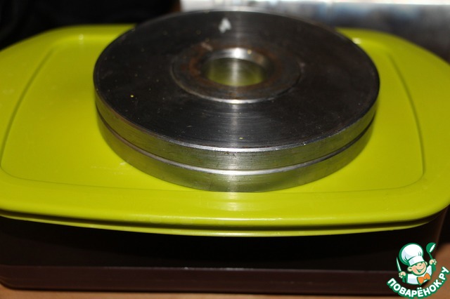 Дать террину слегка остыть. Затем прижать грузом минимум на 10 часов. -