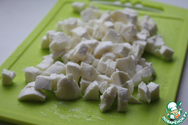 Маринованная моцарелла, поджаренные орехи, нежная рыба и тонкие кусочки хрустящего сельдерея в пикантной заправке создают яркую вкусовую комбинацию... Идея взята у итальянского шеф-повара Кэрол Филд (Field, Carol).