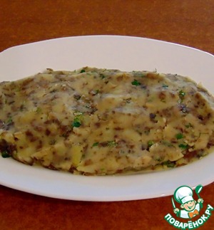 Выкладываем пюре на блюдо, сверху слегка полить заправкой. -
