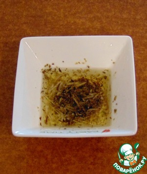 Для заправки: смешать 2 ст. л оливкового масла с соевым соусом, соком лимона и чесноком, пропущенным через пресс.