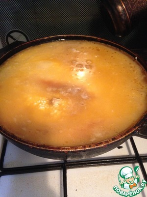 Осторожно перемешиваем не соскребая со дна.