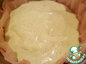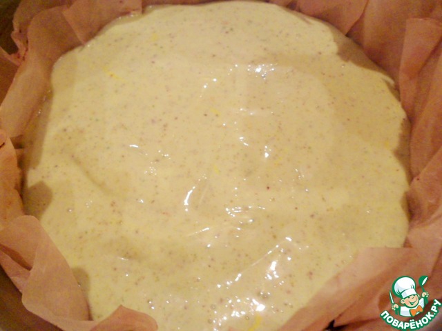 Перемешать и выложить фисташковую прослойку поверх остывшей основы в форму.