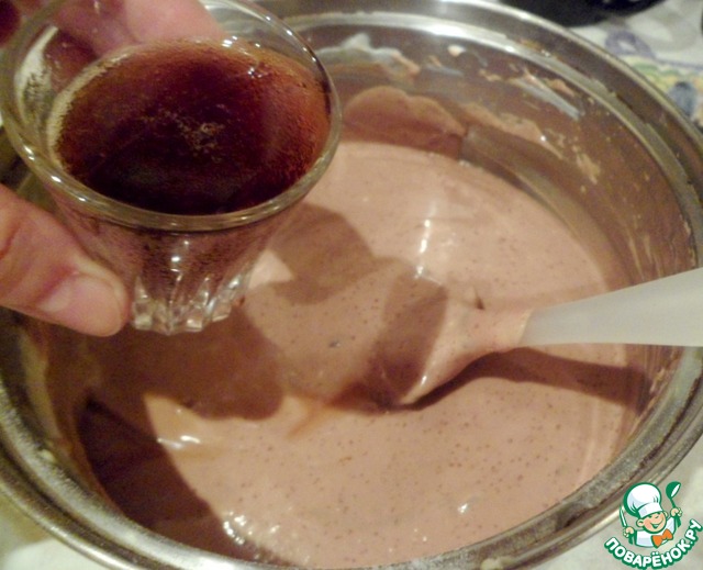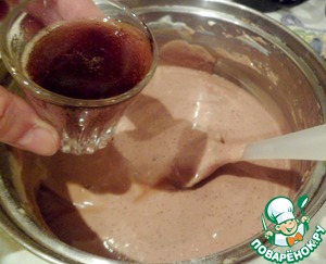 Шоколад растопить на водяной бане, добавить в оставшуюся творожно-сырную массу, аккуратно перемешать. Добавить туда темное пиво, оно придаст карамельный привкус десерту, перемешать.