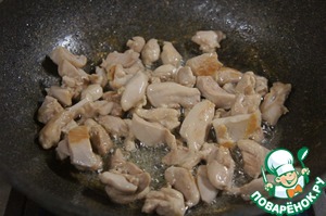 Куриное филе помыть, обсушить и нарезать кусочками или кубиками.