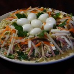 С составом варьирую: могу положить только курицу без ветчины, могу ветчину без курицы. Иногда даже без грибов делаю. Перепелиные яйца только если на праздничный стол, если для себя просто режу тоненько куриные яйца.
