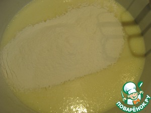 В молоке растворить сахар, соль, вбить яйца, влить масло, взбить миксером