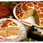 [+5]У нас в семье как то не принято было печь/собирать блинные торты- едим в основном блинами либо фаршированными.. а вот так .. попробовали впервые.. кушать неудобно)- все рассыпается на мелкие части)))