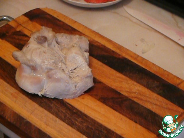 Филе птицы отварить в подсоленной воде, порезать соломкой или кубиками. Все остальные ингредиенты измельчаем на крупной тёрке