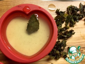 Замочите еще 4 листика желатина до набухания. Растворите в чае. Не добавляйте сахар. Чай сам по себе потрясающе изысканный. Слегка остудите и налейте в формы.