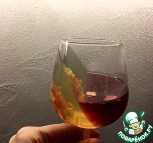 Для форм в виде мужчины и женщины я заварила немного фруктового чая. Растворила 4 пластинки желатина. Добавила ложку сахара, слегка остудила и влила в формы.