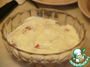 салатник и покрываем полностью майонезом. -