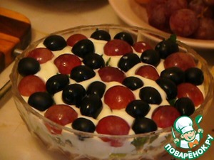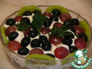 Необычное сочетание ингредиентов для настоящих гурманов - курица и фрукты. Прекрасный вариант слоеного салата для праздничного стола.