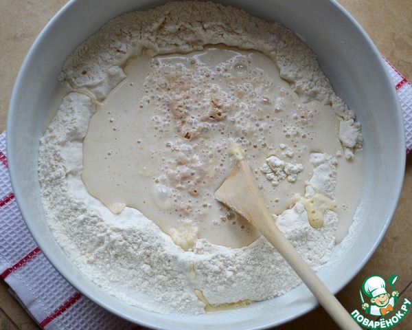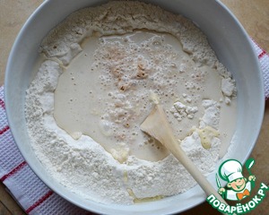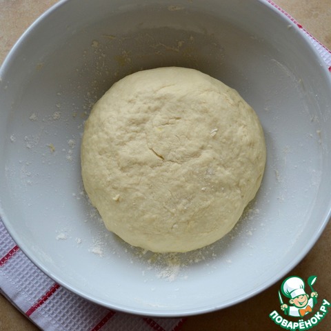 Замесить мягкое тесто. Если жидкости будет недостаточно, добавить чуть-чуть обычной тёплой воды.