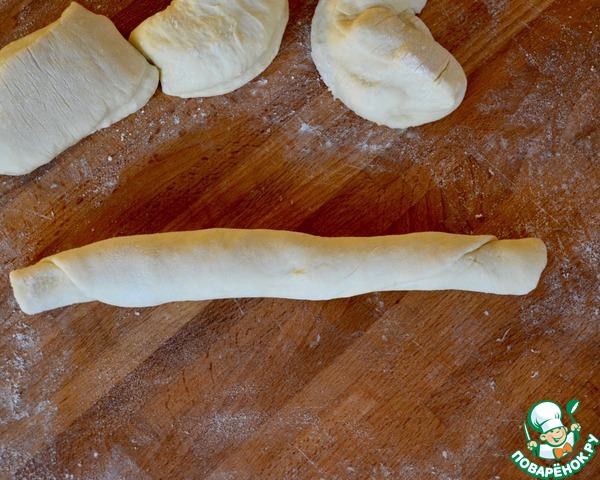 Слегка закрутить и соединить концы, формируя вот такой "бублик". Подготовить таким образом все булочки.