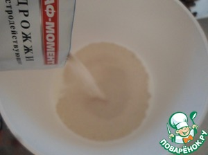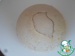 2 ст. л сахара и дрожжи разводим в теплом молоке. Даем постоять 10 минут.