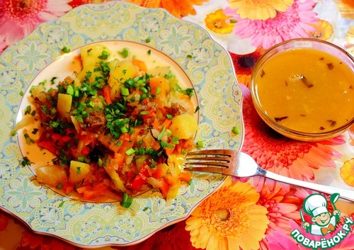 [+4]Вместо белокочанной использовал пекинскую, вместо томатов - томатную пасту. Возможно, поэтому столько бульона не получилось. Но блюдо получилось зачетное!