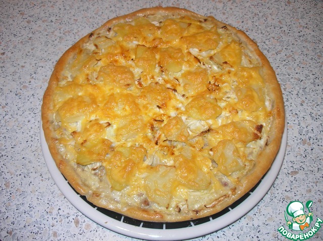 С таким пирогом я сегодня жду любимого мужа с работы. Пирог состоит из тонкого слоя теста, сочной и нежной начинки - отсюда и название, и хрустящей сырной корочки. Сытный, вкусный и ароматный! Думаю, старалась не зря...