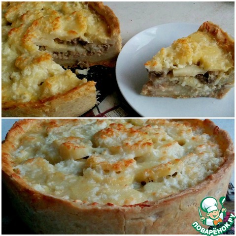 Можно и без грибов приготовить. Просто добавить картошку, лук и мясо. Можно лучок замариновать, это как тебе нравится. Пирог будет вкусный, просто без грибов.