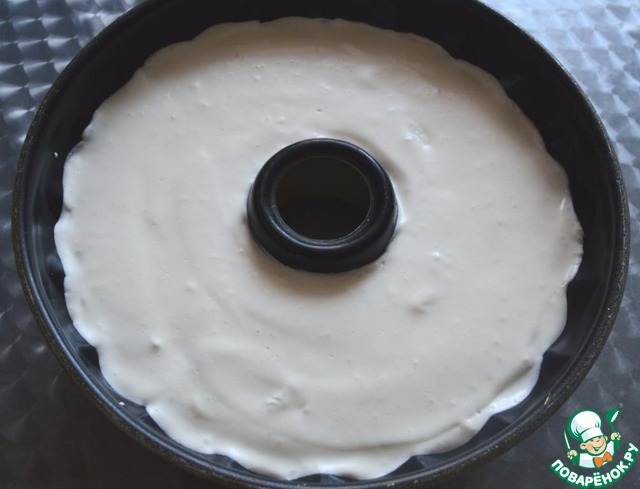 Как застыл вишнёвый слой, выкладываем сверху творожный слой. Разравниваем и опять убираем форму в холодильник.