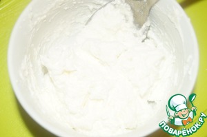 • Для начинки: творог растереть с сахаром, добавить крахмал и перемешать.