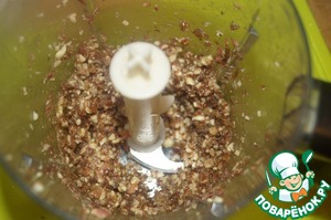 • Изюм промыть, обсушить. Арахис обжарить, можно взять и другие орехи, какие вам нравятся. В блендере измельчить арахис с изюмом, добавить мед и снова перемешать.