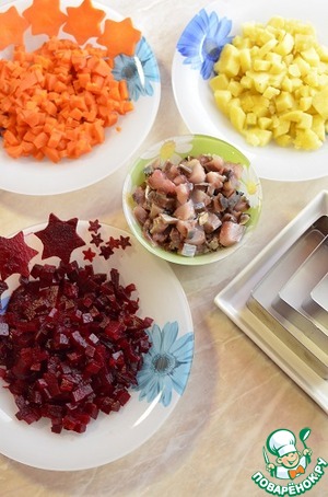 Ингредиенты для «Сельдь под шубой "Для защитника отечества"»: