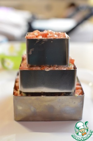 Для сбора салата я использую квадратные кулинарные формы и формочку-звездочка для украшения.