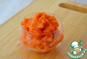 Мякоть тыквы пробить блендером в пюре, сложить в сито с мелкими ячейками, чтобы стекла жидкость, пюре должно быть очень густым, 200 грамм это уже без жидкости.