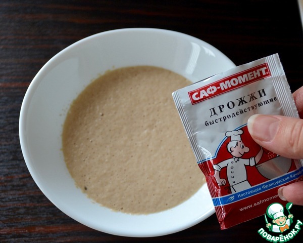 В небольшую мисочку влить тёплое молоко, добавить столовую ложку сахара (от общего количества) и всыпать дрожжи. Оставить на 10-15 минут до образования характерной "шапочки"!
