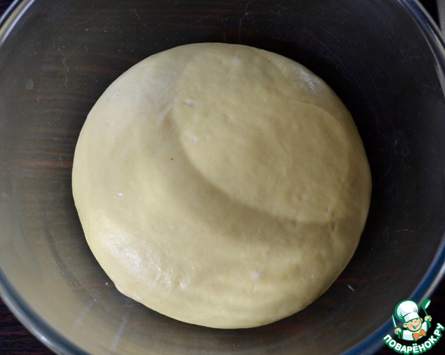 Через час тесто выложить на рабочую поверхность. Отделить от него кусочки теста весом по 50 г. У меня получается ровно 9.