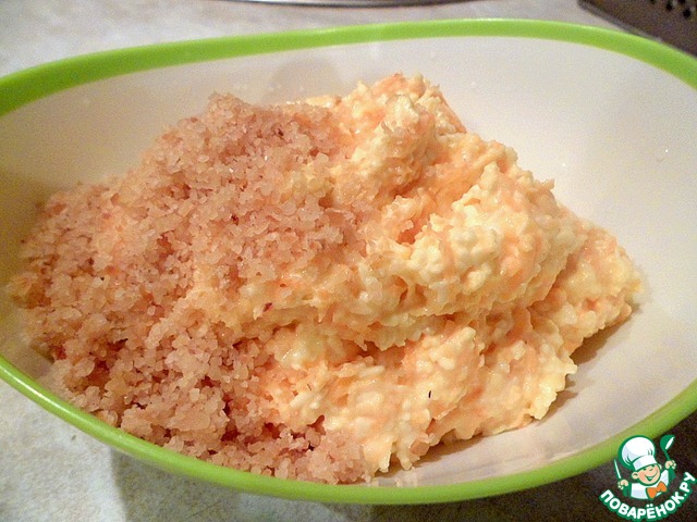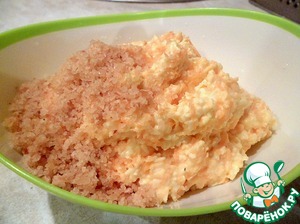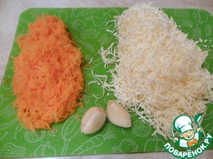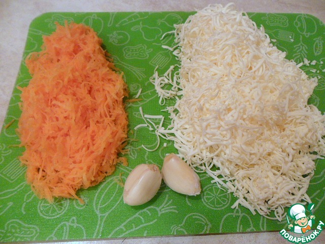 На средней терке натереть свежую морковь, плавленные сырки и чеснок.