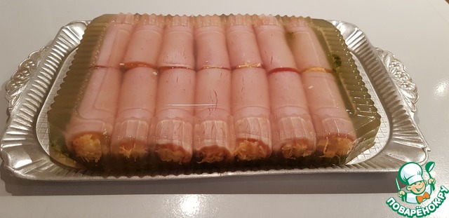Рецепт «Заливное с ветчинно-чесночными рулетами»: