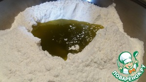 Добавляя воды, замесить крутое, неклеящееся к рукам тесто. Накрыть полотенцем и оставить на 1 час.