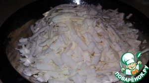 И нарезанный свежий анис. Протушиваем, до уменьшения в об'еме и мягкости (не до размазни) зелени. Снимаем с огня, даем немного остыть.
