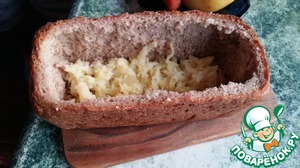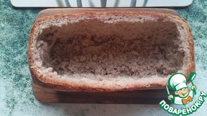 Берем черный кирпич, срезаем верхнюю корочку и вынимаем всю мякоть /она нам еще пригодится/. -