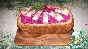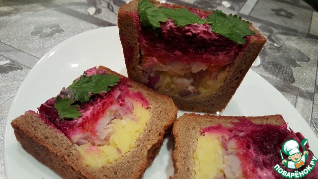 Вариант подачи всеми любимого салата мне показался забавным. Приглашаю и Вас улыбнуться вместе со мной. Бонус - тарталетки из черного хлеба со свекольным муссом..