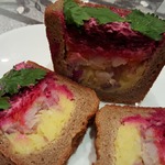 А вот и тарталетки! Мякиш от нашего кирпичика, 1 яйцо, 50 мл. растительного масла, 0,5 ч. л. кумина, 0,5 ч. л. тмина замесить, выложить в формочки, посыпать кунжутом и запечь в духовке /170гр. - 15 мин./ Остудить и заполнить муссом /1 варенную свеклу натереть на мелкой терке, добавить сметану, хрен, соль, лимонный сок /по вкусу/ и взбить.