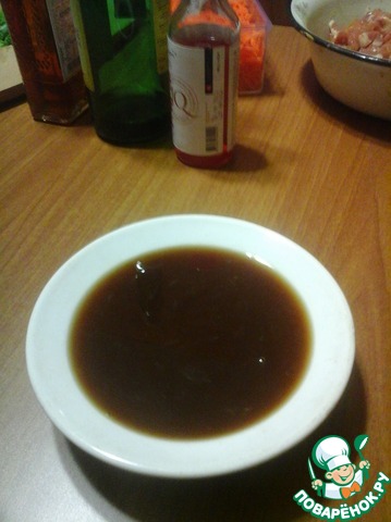 Для соуса смешать 4 чайных ложки соевого соуса, 2 чайных ложки крахмала, 4 чайные ложки вина, 1/2 чайной ложки соли. сахар, уксус и воду.