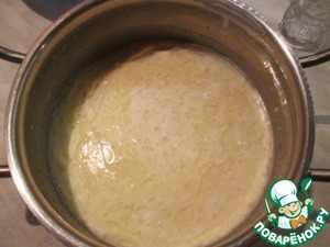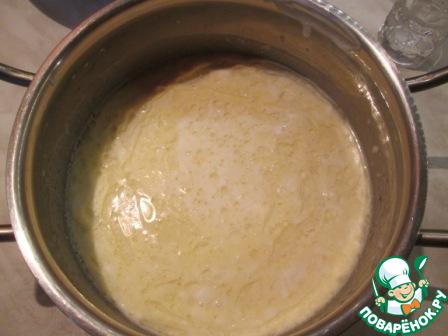 Далее - расстойка. Тесто должно увеличиться вдвое. Я обычно ставлю кастрюлю на котел отопления.