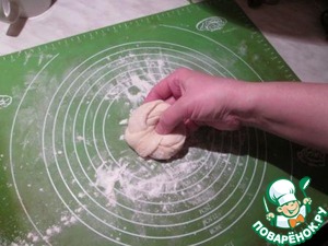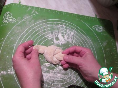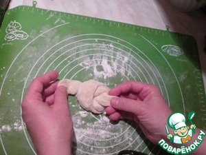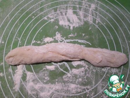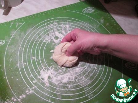 Разогреть духовку до 200 градусов и приступать к формовке булочек. Ладони хорошенько присыпать мукой, отщипнуть от теста небольшой кусочек и раскатать его в "колбаску".